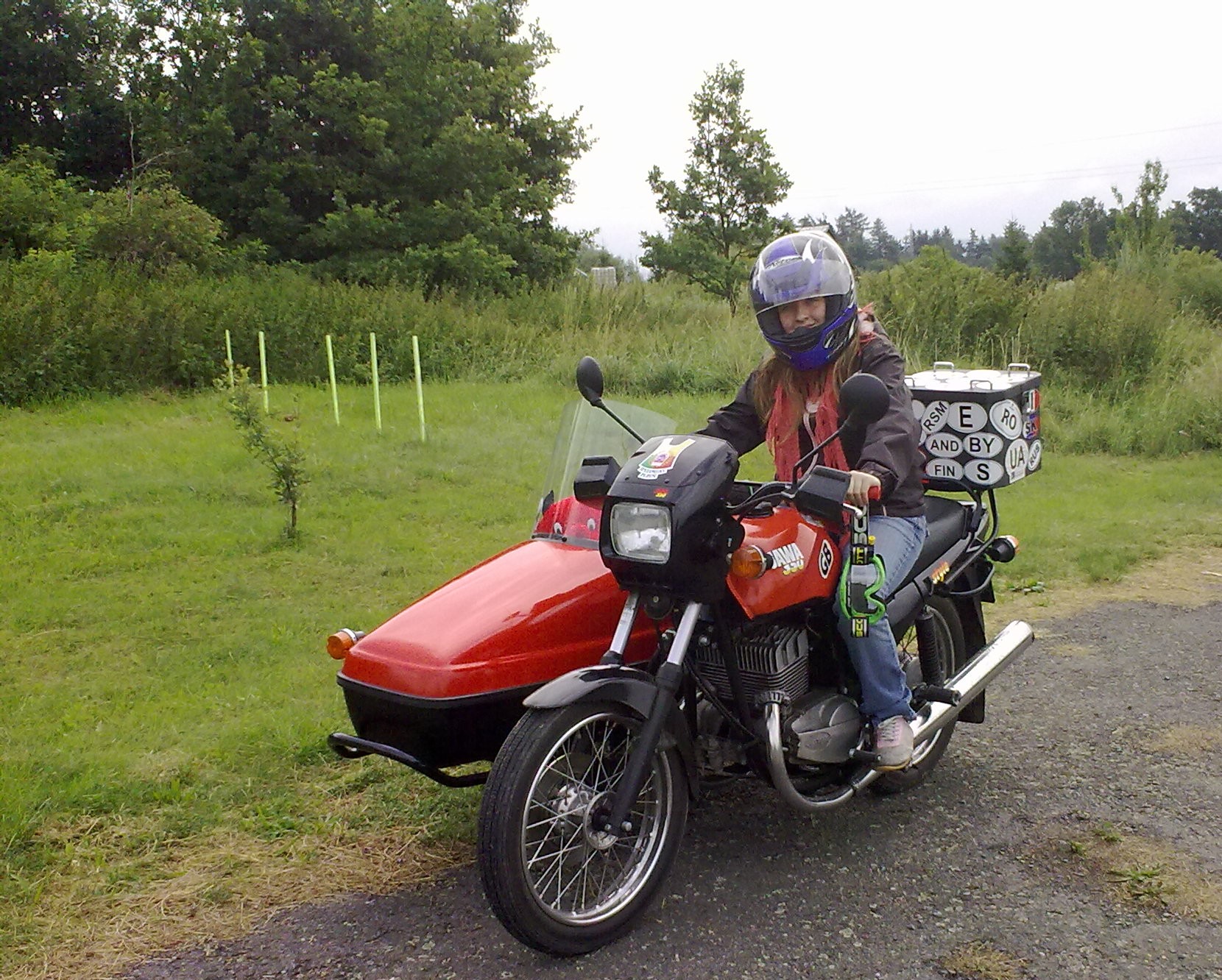 Hanz s Martí brázdí Šumavu...... Martí si na plácku autoškoly vyzkoušela jízdu se sajdou.